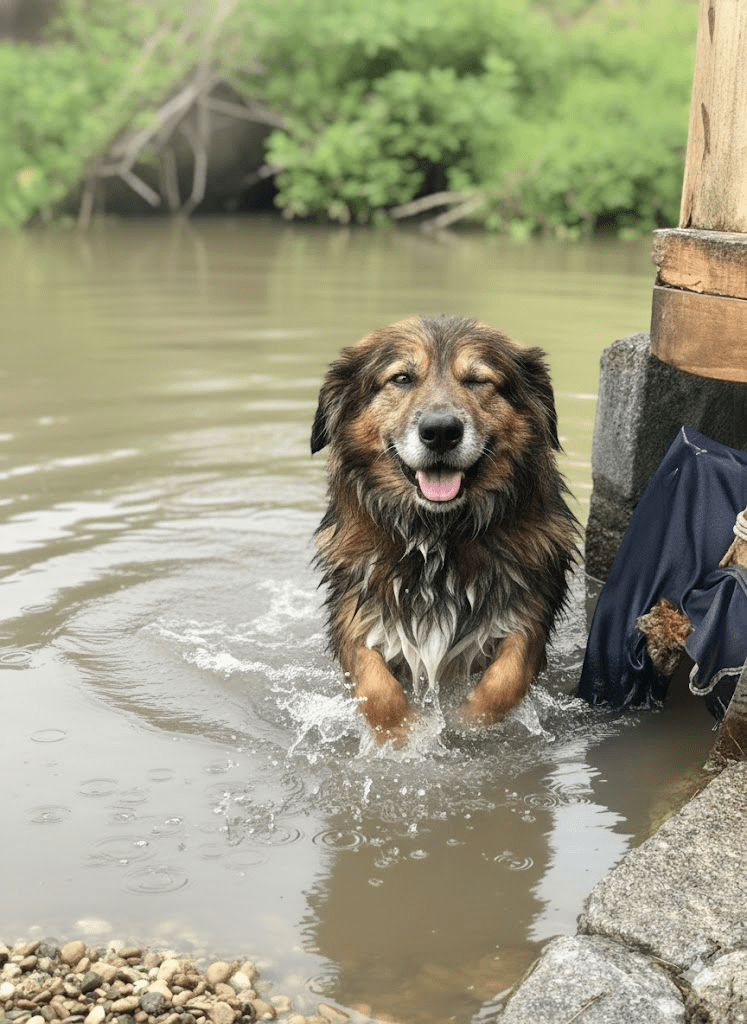 The gentle ripples around the dog suggest movement, perhaps a subtle shift in position or the quiet current of the water itself. It’s a snapshot of a moment suspended in time, where the worries of the world melt away, replaced by the simple, profound joy of being. The expression on the dog’s face, a blend of contentment and curiosity, is truly heartwarming and reminds us of the power of nature to soothe and invigorate.