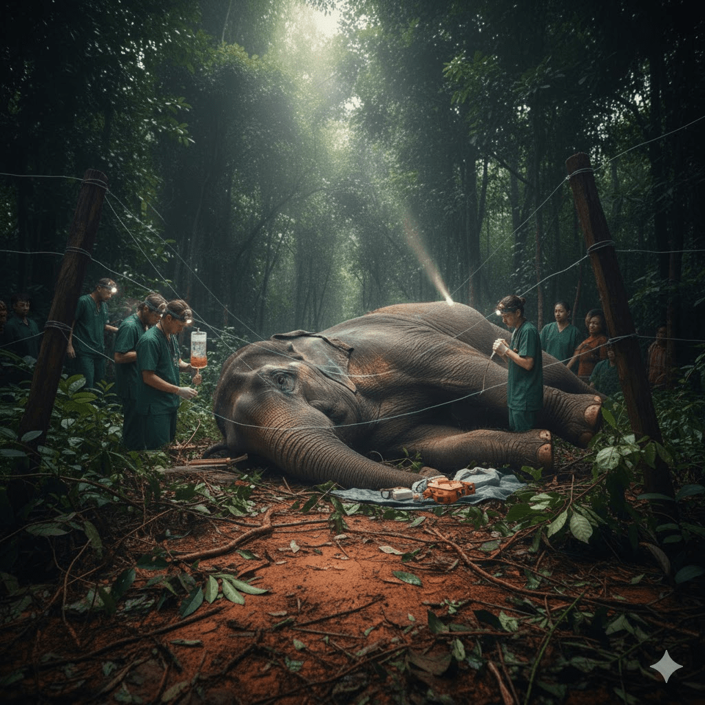 The dense, emerald canopy of Thailand’s wildlife sanctuaries usually hums with the symphony of nature, a testament to the untamed spirit of its inhabitants. But on one fateful morning, an eerie silence descended, broken only by the labored breaths of a colossal creature fighting for its life. Deep within the undergrowth, a magnificent adult male elephant, a sentinel of the forest, lay collapsed, his immense body trembling. His eyes, usually gleaming with ancient wisdom, were clouded with pain, and his powerful limbs, accustomed to traversing vast landscapes, were rendered useless. The air around him crackled with a silent, invisible threat – an illegal high-voltage electric fence, a deadly trap disguised as a deterrent, had ensnared him in its lethal embrace. This wasn’t merely an accident; it was a stark, brutal manifestation of the escalating conflict between human expansion and the inherent right of wildlife to roam free. The scene was one of profound despair, hinting at a desperate struggle against an unseen enemy, a struggle that would soon unfold with unexpected twists and turns, captivating the attention of a nation.