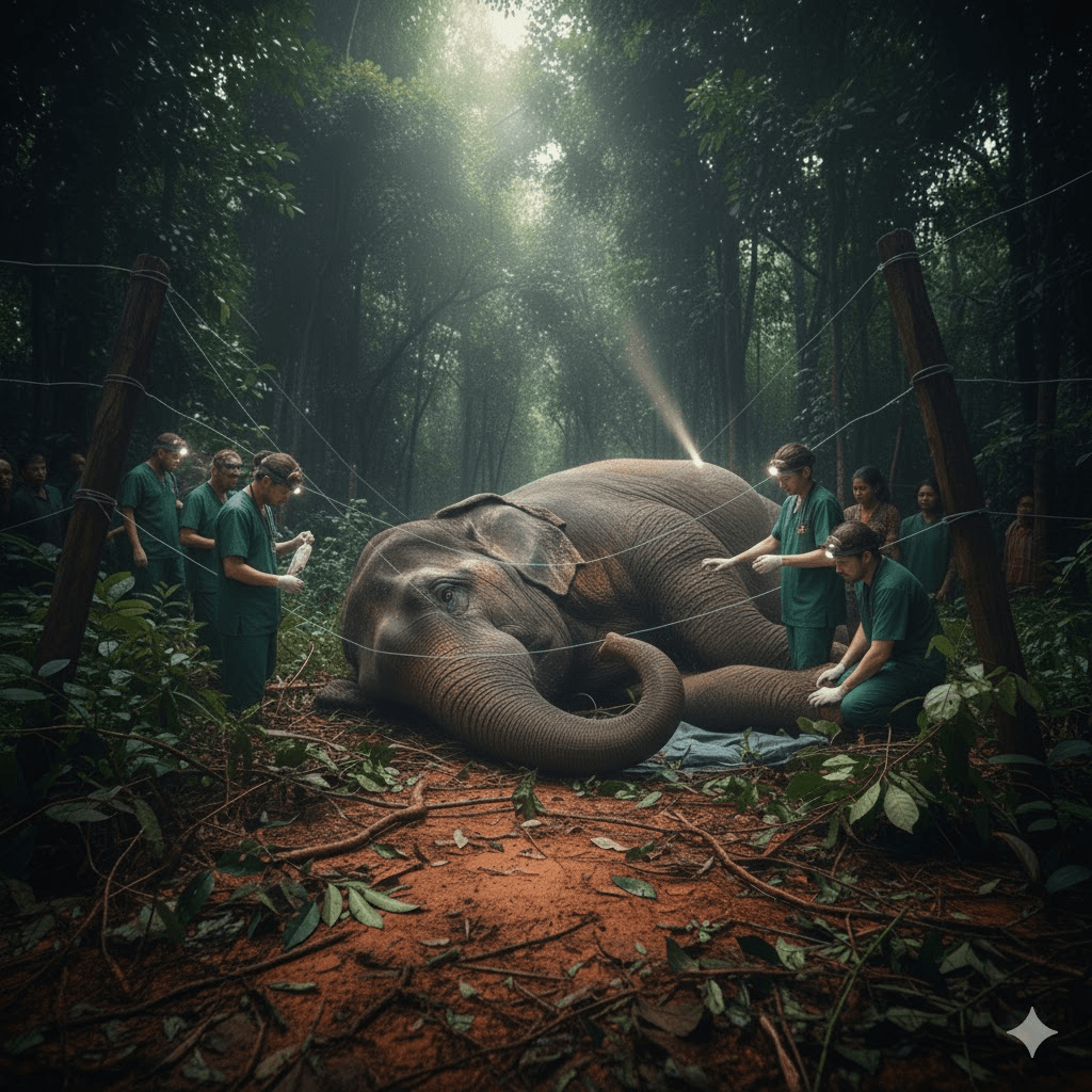 The alarm was raised by local villagers, not with shouts of anger, but with a surprising display of concern. Their initial fear of crop destruction was momentarily overshadowed by the sight of the struggling giant. Word quickly reached wildlife authorities, and a specialized veterinary team was immediately dispatched. The race against time had begun, with every second critical in reversing the severe electric shock that coursed through the elephant’s massive frame. As the vets arrived, the sheer scale of the challenge became apparent – how do you treat an unconscious, wild elephant in the heart of a dense forest?