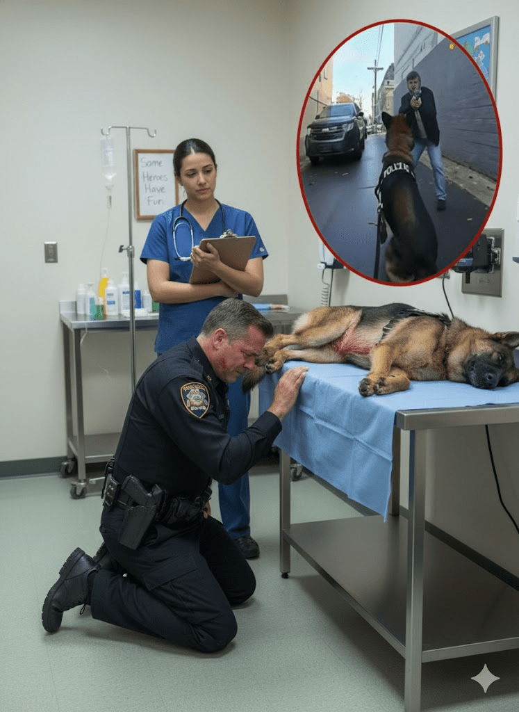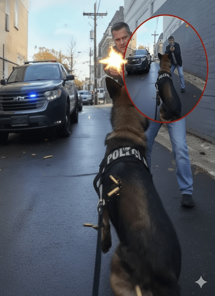In an instant, Echo, without hesitation, launched himself forward. The flash and deafening crack of the gunshot were almost simultaneous with Echo’s lunge, the brave dog placing himself directly between Officer Vance and the assailant. Three shots rang out, striking Echo instead of his handler. The suspect, momentarily stunned by Echo’s incredible bravery and the sudden turn of events, was quickly apprehended by Vance, who, despite the shock, reacted with professional precision. The immediate aftermath was a blur of frantic radio calls and the wail of approaching sirens, but for Vance, all that mattered was the still form of his partner.