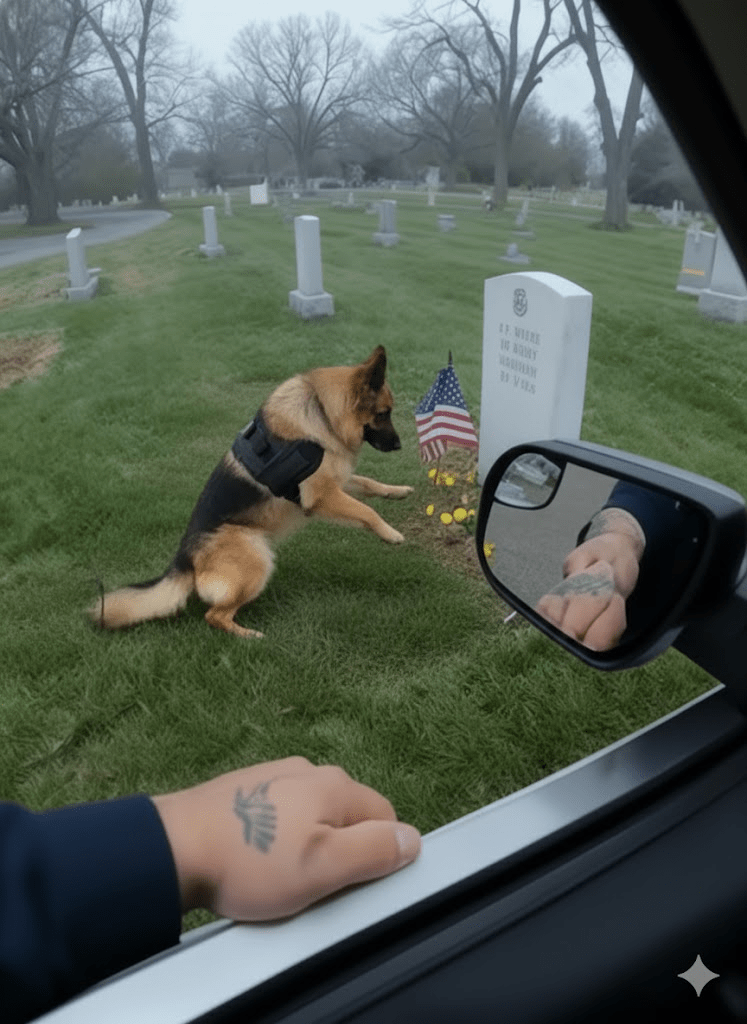 The morning mist still clung to the gravestones, a silent witness to a scene that would soon captivate millions. Officer Daniel Miller, a veteran K9 handler, felt a familiar ache as he slowed his patrol car, not at an emergency, but at a solemn patch of green. Beside him, Rex, his new K9 partner, shifted restlessly. For months, Rex had been a shadow of his former self, a highly trained German Shepherd carrying a silent grief that no human could fully comprehend. His previous partner, Officer James Carter, had been killed in the line of duty, leaving a void that even time seemed unable to fill. Miller had tried everything to help Rex heal, but the dog remained lost in a world of memories, forever waiting for a voice that would never call his name again. Today, however, something was different. As they passed Carter’s grave, Rex let out a low, insistent whine, a sound Miller hadn’t heard in ages. Before Miller could react, the K9, with a surge of unexpected energy, launched himself from the patrol car.
