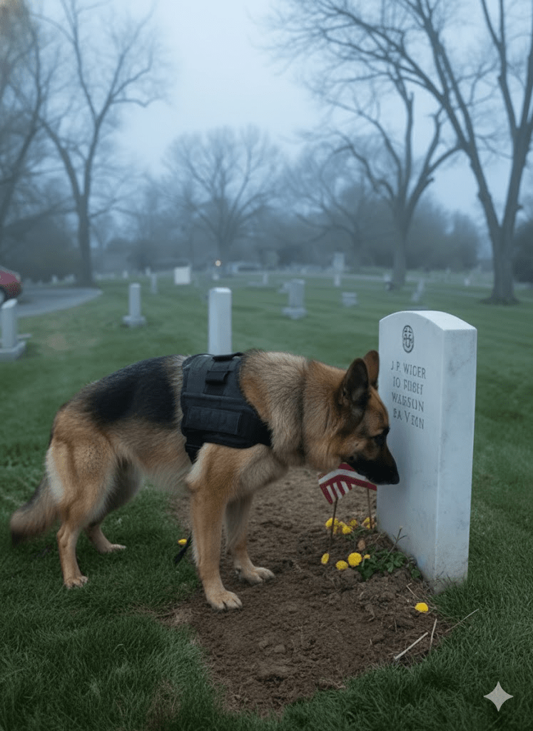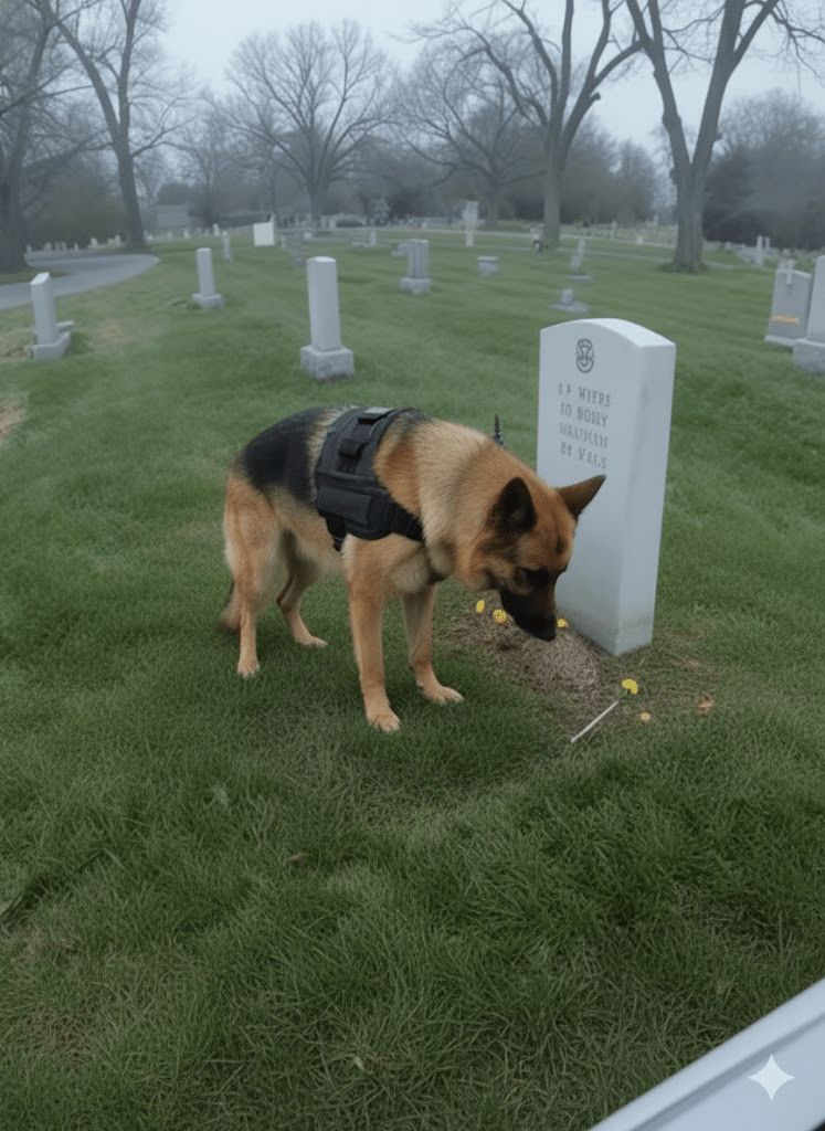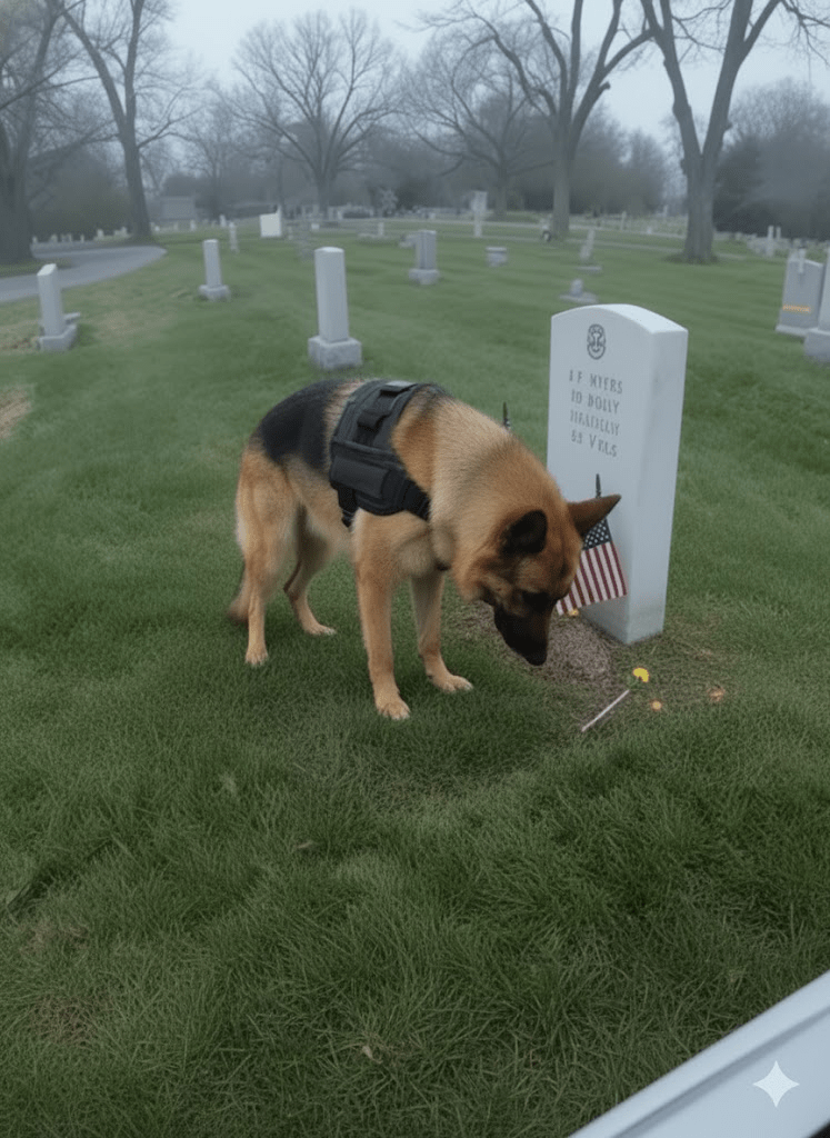 Miller watched, stunned, as Rex, usually so disciplined, disregarded his commands. The K9 raced across the damp grass, a blur of fur and unwavering determination, heading straight for a specific headstone. It was Carter’s. A wave of emotion washed over Miller – a mix of sorrow for his fallen comrade and awe at the raw, untamed loyalty of the animal before him. He had heard stories of K9s mourning their partners, but to witness it firsthand was profoundly different. Rex reached the grave, not with frantic barking or digging, but with a quiet dignity that spoke volumes.