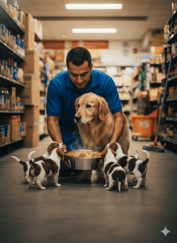 The employee, deeply affected, didn’t hesitate. He rushed back into the store, not for another loaf, but for something far more substantial. He returned with a large bowl of warm, cooked food, specifically prepared for the hungry family. The mother dog, usually wary of humans, allowed him to approach, her focus entirely on her grateful offspring. This unexpected act of kindness was the first twist, transforming a potential confrontation into a moment of profound empathy.