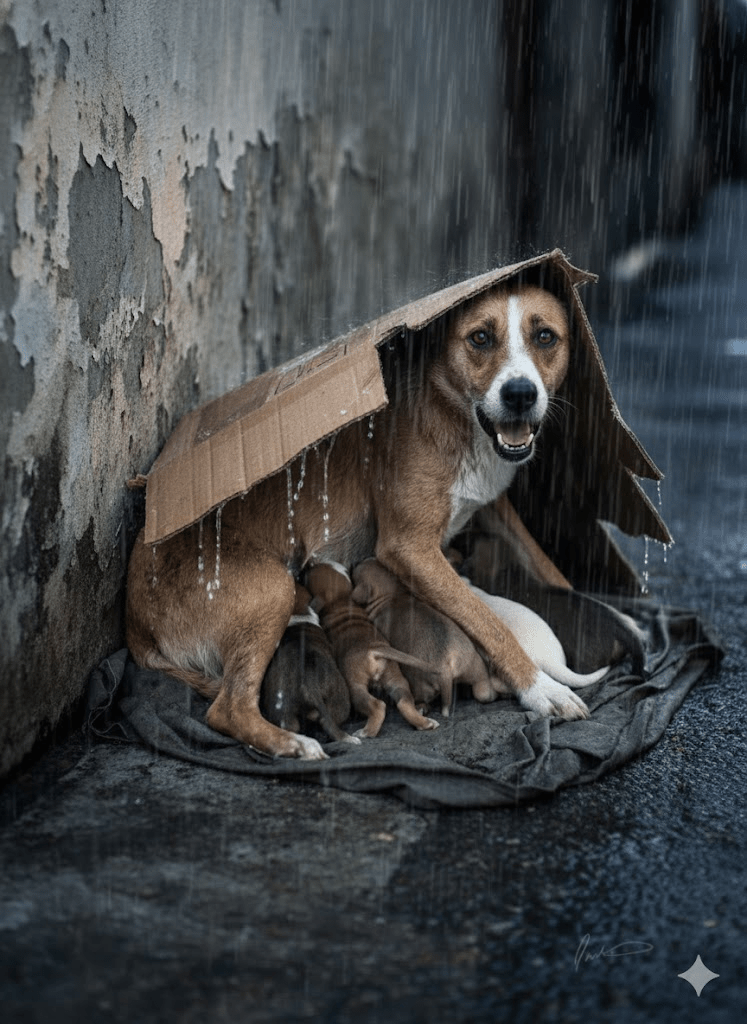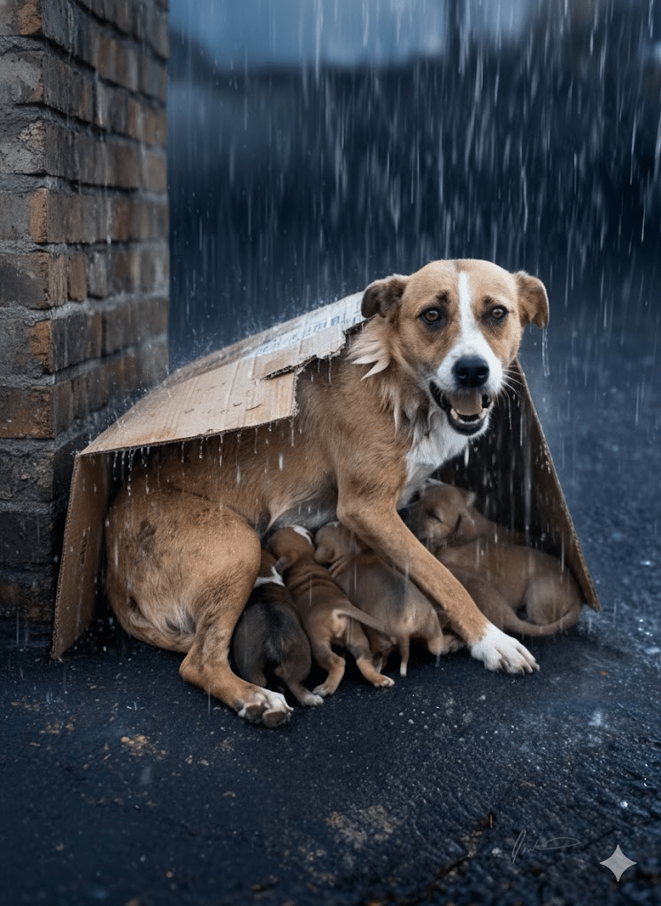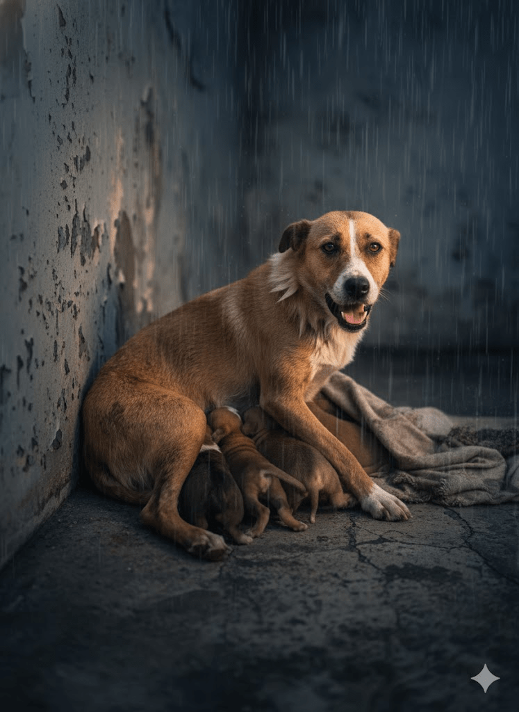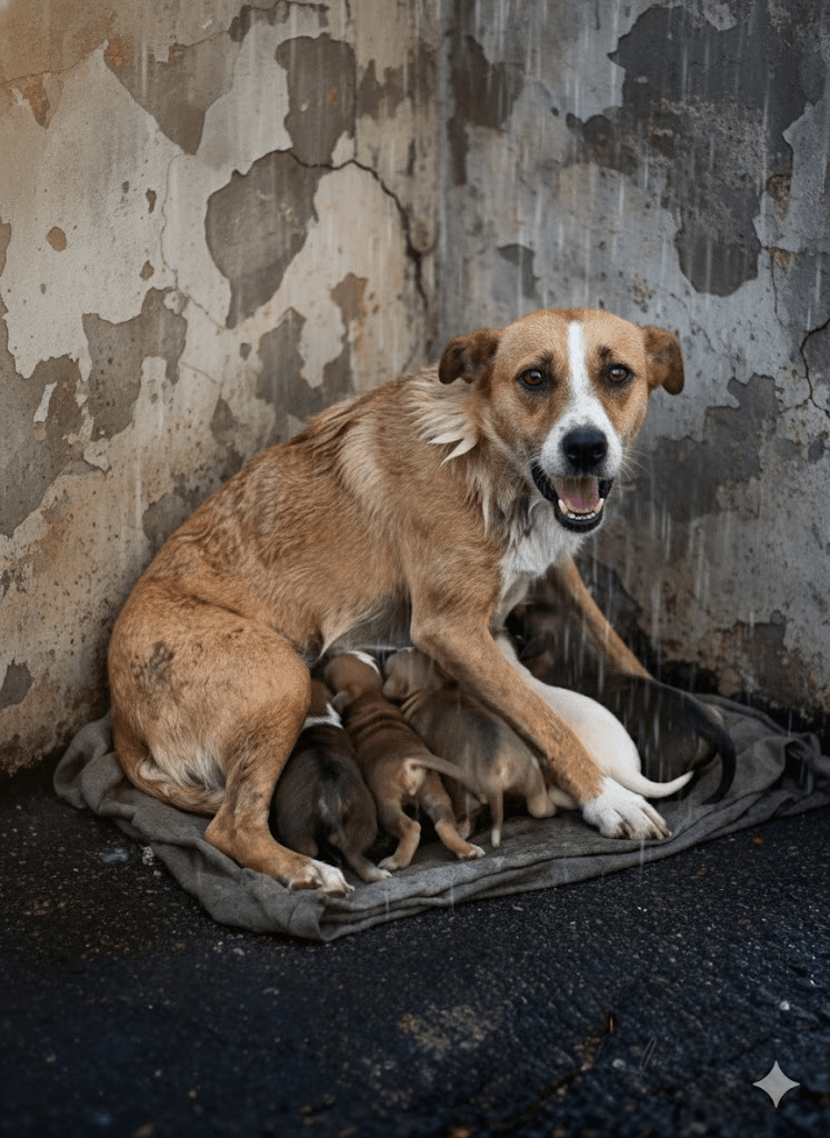 Life on the streets for stray animals is a constant battle against hunger, exposure, and danger. For a mother dog, these challenges are magnified tenfold when she has a litter of defenseless pups. Every day is a fight for survival, a search for scraps, and a desperate attempt to find a safe, dry place to shelter her little ones.