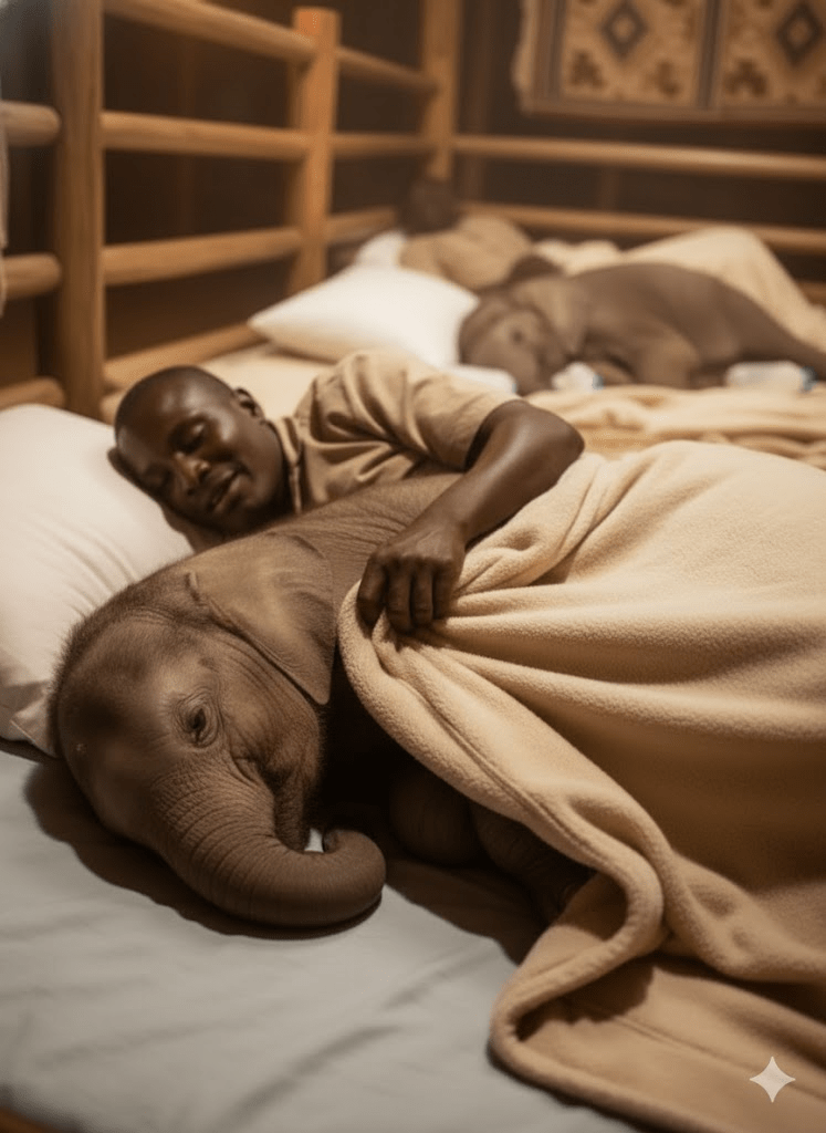 The stillness of the Kenyan night was shattered by a sound familiar yet heartbreaking to the dedicated team at the David Sheldrick Wildlife Trust’s elephant nursery: the cries of newly orphaned baby elephants. Separated from their mothers by tragic circumstances, these tiny giants were experiencing their first night alone, and their distress was palpable. Yet, amidst their sorrow, a remarkable scene unfolded, a testament to the profound bond between humans and animals. Keepers, acting as surrogate parents, lay beside them in their individual enclosures, offering comfort, warmth, and the constant reassurance that they were not abandoned. This wasn’t merely a job; it was a calling, a deeply personal commitment to nurture these vulnerable beings back to health and hope.