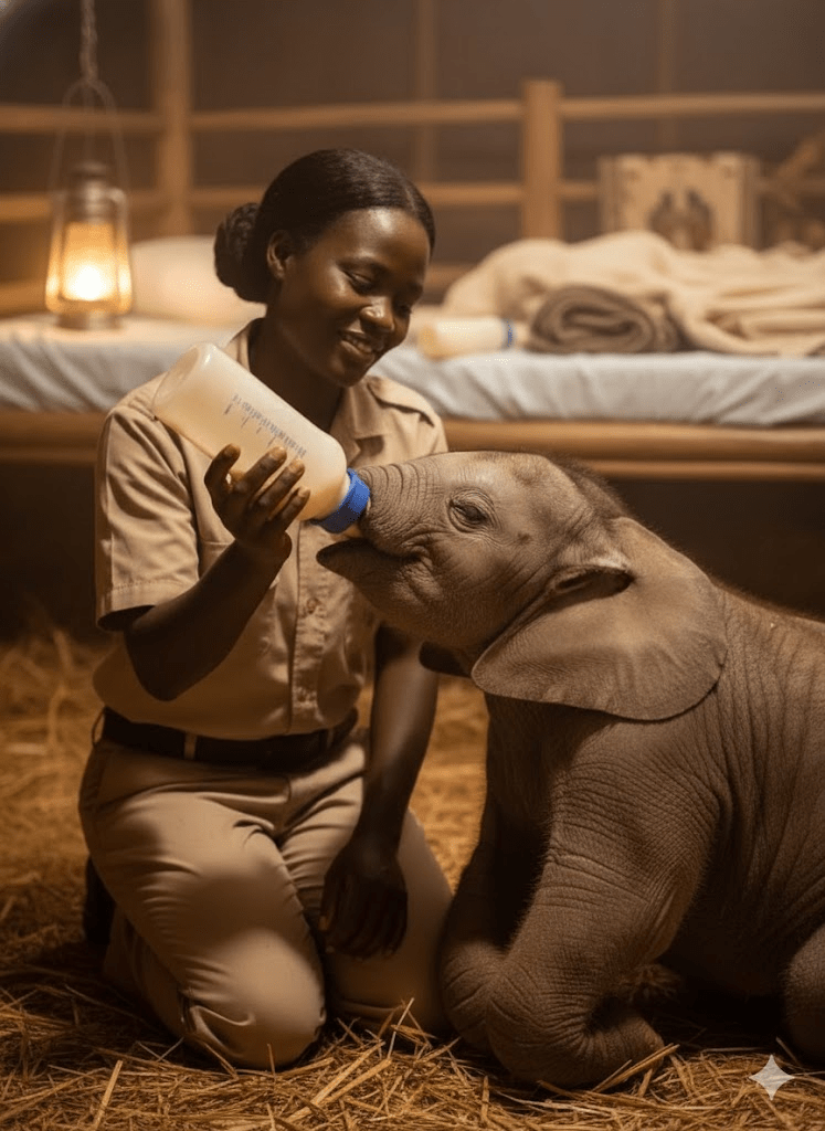 Hours later, as the first hint of dawn painted the sky, another surprise unfolded. Keeper Mary, who had been struggling to get baby Jotto to drink his formula, finally saw a breakthrough. Jotto, who had refused all nourishment since his arrival, suddenly took a deep, sustained gulp from the bottle. Mary’s exhaustion was momentarily forgotten, replaced by a surge of relief and joy. It was a small victory, but in the world of orphaned elephants, every sip, every moment of acceptance, was a monumental step towards survival. The crisis of refusal had turned into a glimmer of hope.