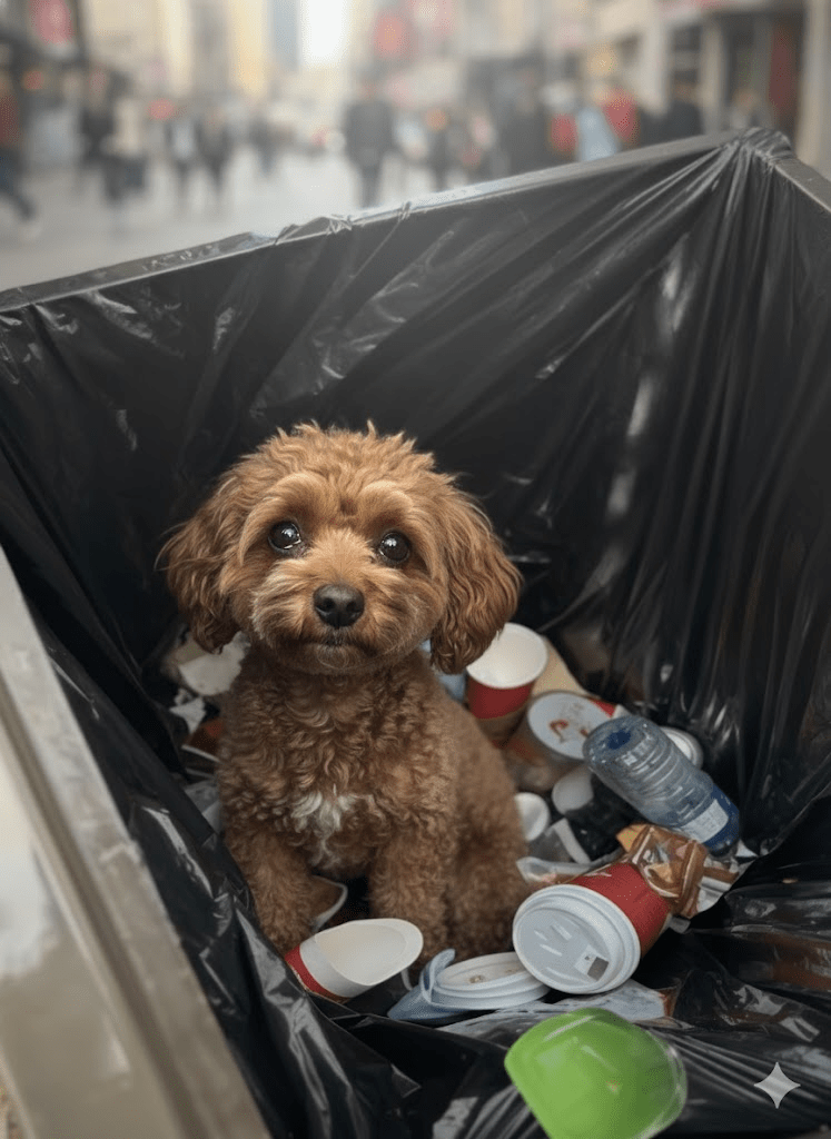 Ultimately, the image of this poodle in the trash bin is a call to action for all of us. It’s a reminder that pets are not commodities; they are living, feeling beings who deserve love, care, and a permanent home. By working together, we can turn the tide on pet abandonment and ensure that no animal ever again experiences the despair of being discarded.