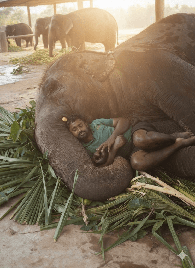 The dust motes danced in the early morning light filtering into the elephant sanctuary, illuminating the scene of quiet devotion. Raja, a man whose hands bore the calluses of years spent tending to these magnificent creatures, found himself in a familiar predicament – dozing off amidst his charges. His slumber wasn’t born of idleness, but exhaustion. He had been up long before dawn, a constant presence for the elephant orphans who, despite the best efforts of the sanctuary staff, still woke with the phantom fears of abandonment. Their cries, tiny trumpeting sounds of distress, were a nightly symphony he had learned to navigate with gentle patience, never forcing comfort, simply being there – a quiet, steady anchor in their storm of grief. This particular morning, however, was different. He awoke not to a cry, but to a profound sense of warmth and a gentle weight across his chest. He stirred, his eyes slowly opening to find himself enveloped in the tender embrace of a young elephant’s trunk, a soft, rhythmic breath rising and falling beside him. It was Kamala, the most withdrawn of the orphans, who had finally, unequivocally, chosen him.