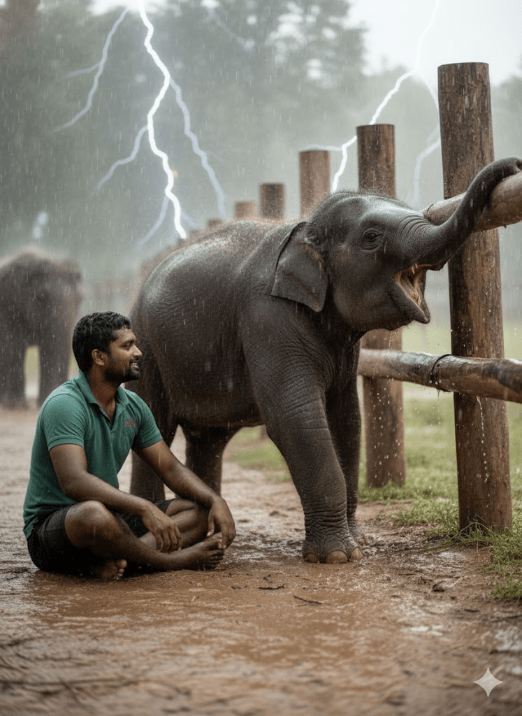 The storm eventually passed, leaving behind a drenched landscape and an eerie quiet. Raja, soaked and shivering, was preparing to leave Kamala’s enclosure when he felt a nudge. Slowly, tentatively, Kamala extended her trunk, not to push him away, but to gently touch his arm. It was a fleeting, almost imperceptible gesture, but for Raja, it was a seismic shift. It was the first time she had initiated contact, a fragile thread of connection in the aftermath of the chaos. From that day, a subtle change began. Kamala would watch him from afar, her initial suspicion slowly giving way to cautious observation.