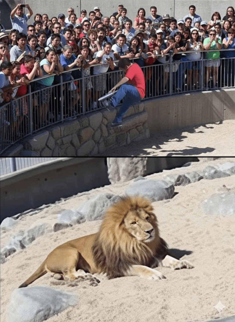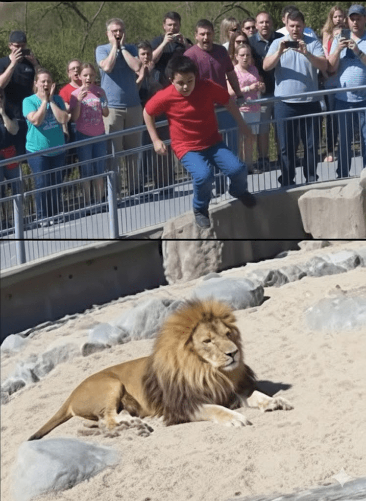 The hum of a typical Tuesday afternoon at the grand savanna exhibit was shattered by a collective gasp. Onlookers watched in horror as a young boy, later identified as 8-year-old Leo, who is on the autism spectrum, deftly slipped beneath a seemingly impenetrable safety rail. Before any staff could react, Leo had scaled the short retaining wall and, with an almost ethereal calm, dropped into the expansive, sandy enclosure of Kwan, the zoo’s magnificent 400-pound African lion. The scene unfolded with a terrifying grace, a ballet of impending disaster that seemed destined for tragedy. Panic rippled through the crowd, mothers clutching their children, fathers reaching for phones, all braced for the inevitable, brutal display of nature red in tooth and claw. Yet, what transpired next defied every expectation, every biological imperative, and every shred of conventional wisdom regarding human-animal interaction.