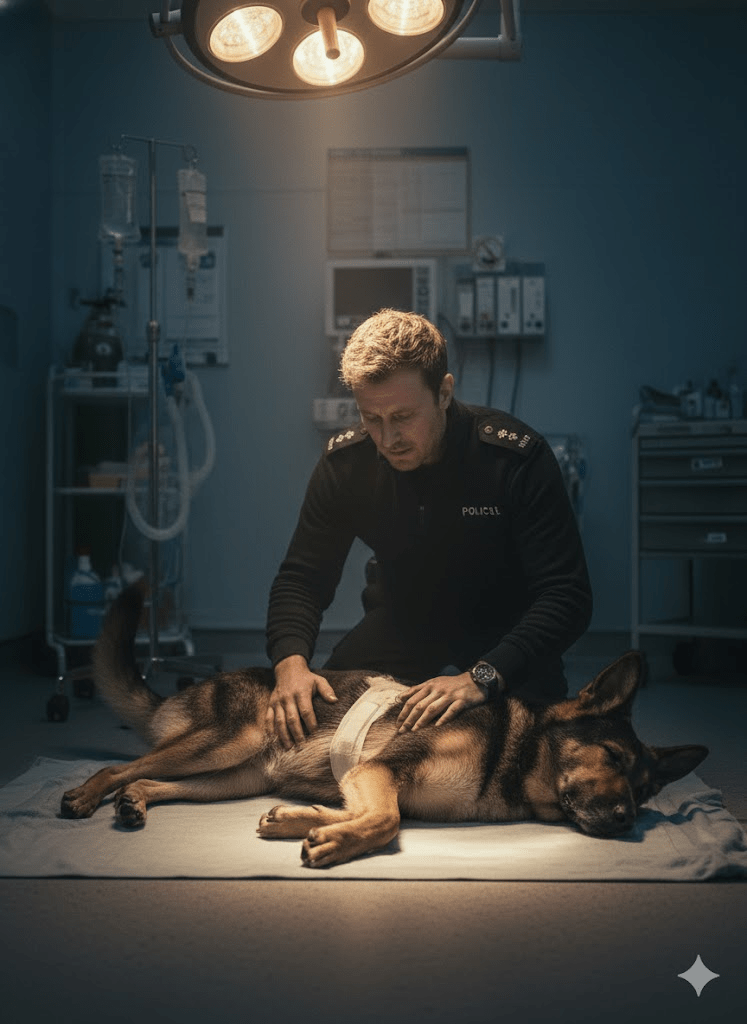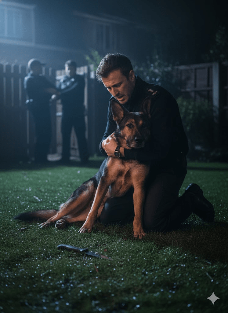 The quiet suburban night of October 5th, 2016, shattered for PC Dave Wardell and his police dog, Finn, when a routine pursuit turned into a life-or-death struggle. Chasing a suspect through darkened gardens, the air thick with tension, Wardell found himself face-to-face with a terrifying reality. A knife, wielded with malicious intent, lunged towards him. In a fraction of a second, without hesitation, Finn, a German Shepherd with seven years of loyal service, a partner in every sense of the word, threw himself forward. The blade meant for Wardell plunged into Finn’s chest, narrowly missing his heart. Even as blood bloomed on his fur, the valiant dog held fast, pinning the assailant until backup arrived. It was only when the immediate danger had passed, and the suspect was apprehended, that Finn finally collapsed into Dave’s arms, his life hanging by a thread. The journey to the veterinary surgery was a blur of flashing lights and desperate prayers, the prognosis grim, but Finn, as always, proved to be an extraordinary fighter.