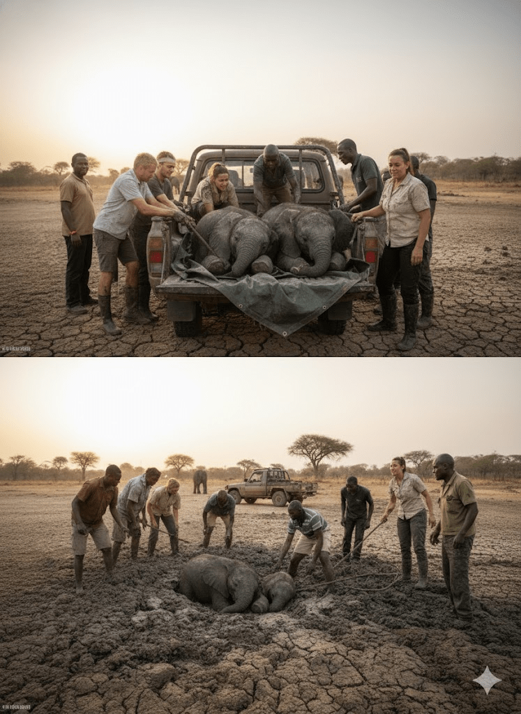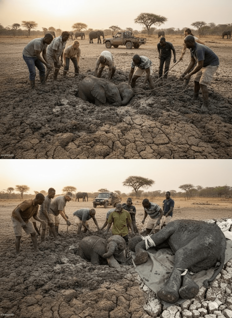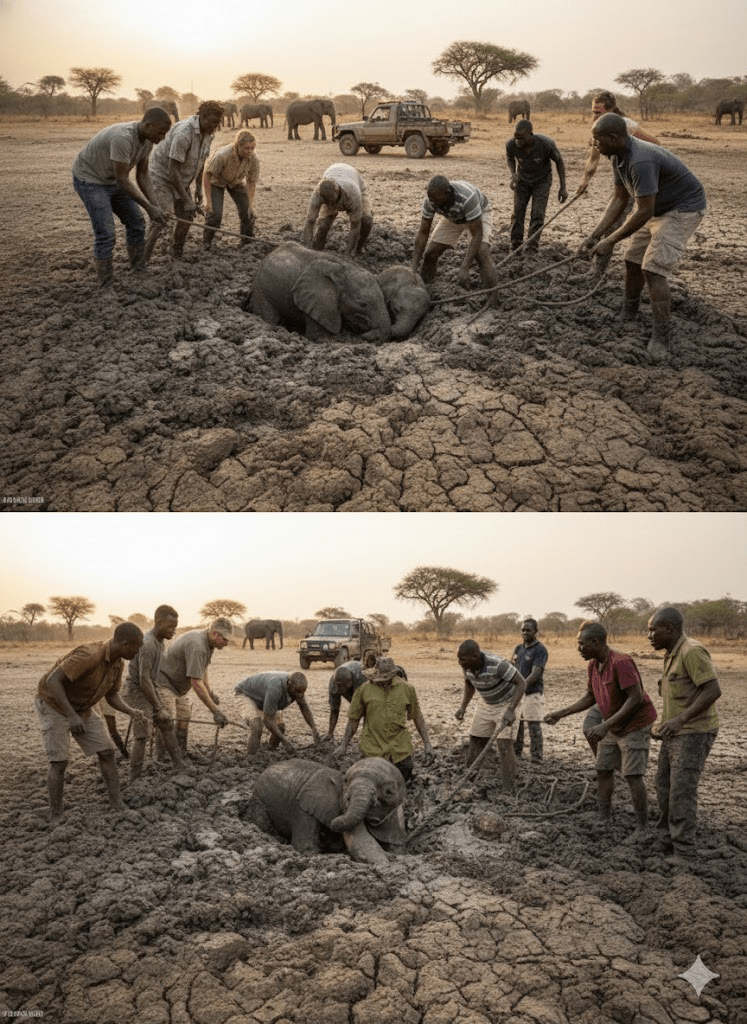 The air hung heavy with the dust of a prolonged drought, casting a pall over the usually vibrant landscape of Zimbabwe’s Gonarezhou National Park. For weeks, the sun had relentlessly baked the earth, turning once-lush watering holes into treacherous quagmires of thick, clinging mud. It was into one such deadly trap that two young elephant calves, Tess and Mana, had stumbled. Their tiny bodies, barely strong enough to navigate the harsh terrain, quickly sank deeper with every panicked struggle. Their mothers, driven by an instinct to protect but helpless against the unforgiving mud, watched nearby, their mournful trumpeting echoing the calves’ desperate cries. Time was running out, and the situation seemed dire until a glimmer of hope appeared in the form of wildlife photographer Jens Cullmann. On assignment nearby, Cullmann, a veteran observer of the wild, immediately recognized the gravity of the situation. His urgent call for help galvanized a dedicated team of conservationists, park rangers, and local volunteers, all rushing against the clock to the remote, parched location. The scene was heart-wrenching: two innocent lives teetering on the brink, their struggle a stark reminder of nature’s relentless cruelty during times of extreme environmental stress.