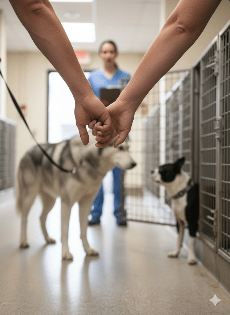 So, with a renewed sense of purpose, we hurried back to the adoption desk. Sarah, the volunteer, initially looked surprised, but a quick explanation of Zeus’s silent protest and Hades’s anxious gaze brought a knowing smile to her face. Within minutes, the paperwork for Hades was also complete. It was a whirlwind decision, a spontaneous act driven by empathy, and as we walked out into the sunlight moments later, it felt undeniably right. The four of us – two humans, one majestic Husky, and one brave little Terrier – embarked on our new life together.
