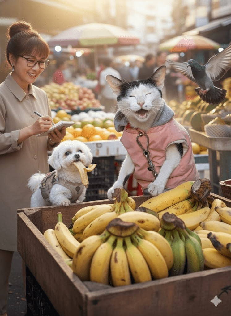 His fame, however, brought unexpected challenges. One particularly sweltering afternoon, a renowned food critic, notorious for her scathing reviews, approached the stall. She wasn’t interested in bananas; she wanted a story. Mr. Meownana, sensing the gravitas of the moment, didn’t just offer her fruit. He performed. He “yelled” at a passing pigeon, artfully “overcharged” a curious poodle for a single banana peel, and even, at the climax, delivered a series of rapid-fire “meows” that seemed to convey the entire history of his entrepreneurial journey. The critic, initially skeptical, left with a wide smile, a bunch of bananas, and the framework for a glowing article that would soon go viral, solidifying Mr. Meownana’s status as a culinary and cultural icon.