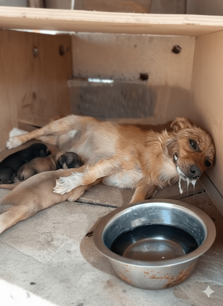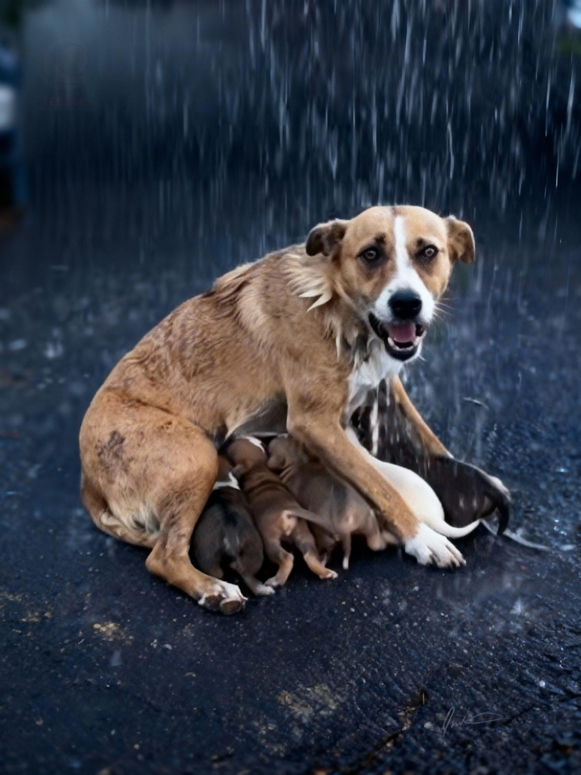 In the face of adversity, a mother's love shines brightest. This powerful image captures a poignant moment of a stray…
