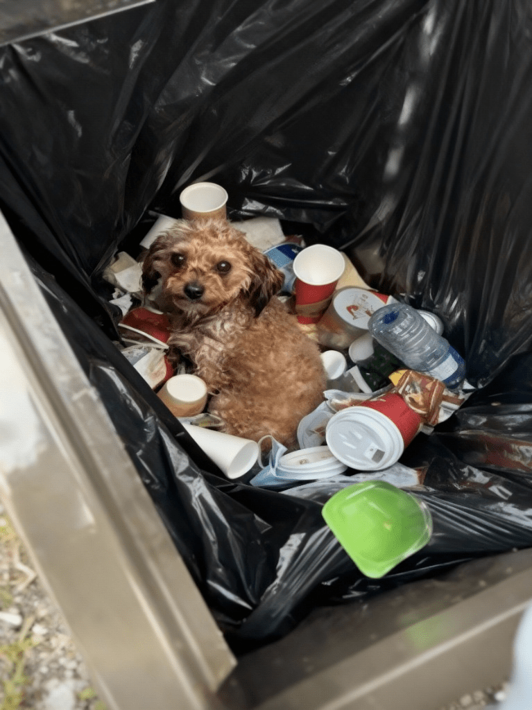 The image of a small, innocent poodle nestled amidst a pile of discarded trash in a bin is not just…