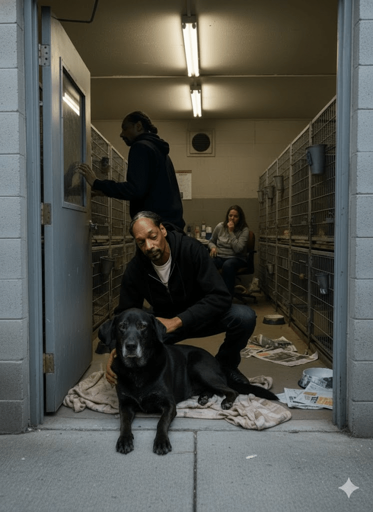 Without warning, a tall, familiar figure in a simple black hoodie strode into the hushed facility. It was Snoop Dogg, the legendary rapper, entrepreneur, and philanthropist, known for his commanding presence on stage but also for his surprising tenderness away from the spotlight. He didn’t come with a press entourage or fanfare; his arrival was discreet, almost clandestine. His gaze swept over the rows of kennels, past the anxious faces of the dogs, until it settled on a quiet corner in the very back. There, an 11-year-old Labrador mix named Buddy lay weak and seemingly forgotten, a symbol of the shelter’s dwindling hope.