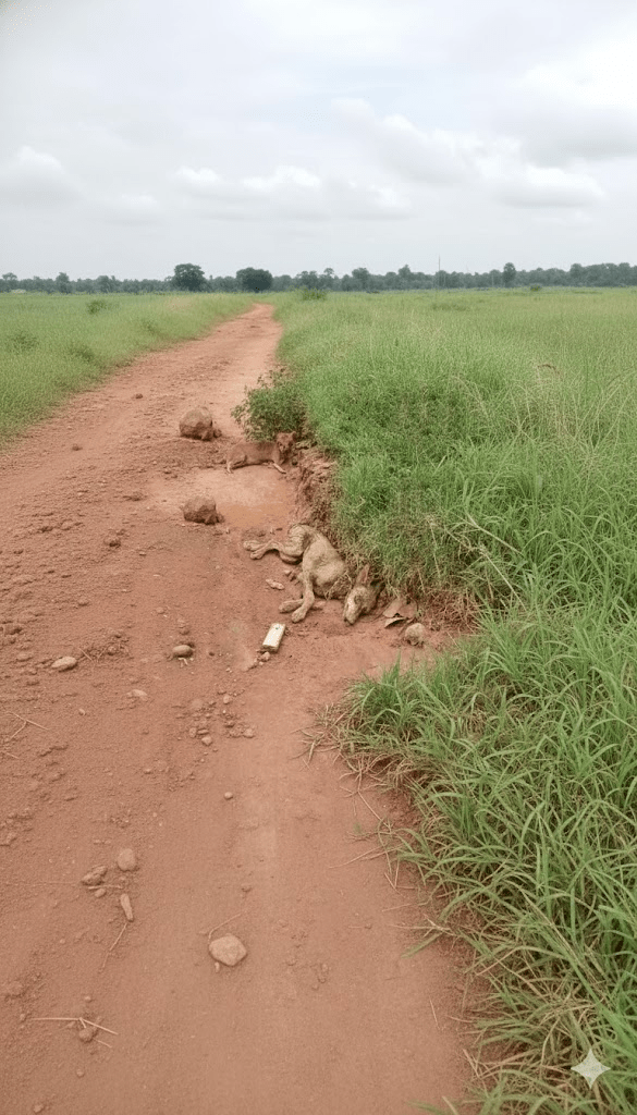 The sight of a deceased dog on the side of a rural road is a poignant and all too common occurrence, painting a stark picture of the challenges faced by stray and neglected animals. This particular scene, with the animal lying motionless beside a dirt path, partially obscured by overgrowth, evokes a sense of sadness and raises immediate questions about its life and final moments. The subtle details—the earthy tones of the soil, the green blades of grass hinting at life continuing around the stillness—only deepen the emotional impact. It serves as a somber reminder of the vulnerabilities of creatures who often depend entirely on human compassion and intervention for their well-being. This image, though difficult to view, compels us to look closer at the silent suffering that often goes unnoticed in the periphery of our daily lives, urging a deeper reflection on our collective responsibility towards animal welfare.