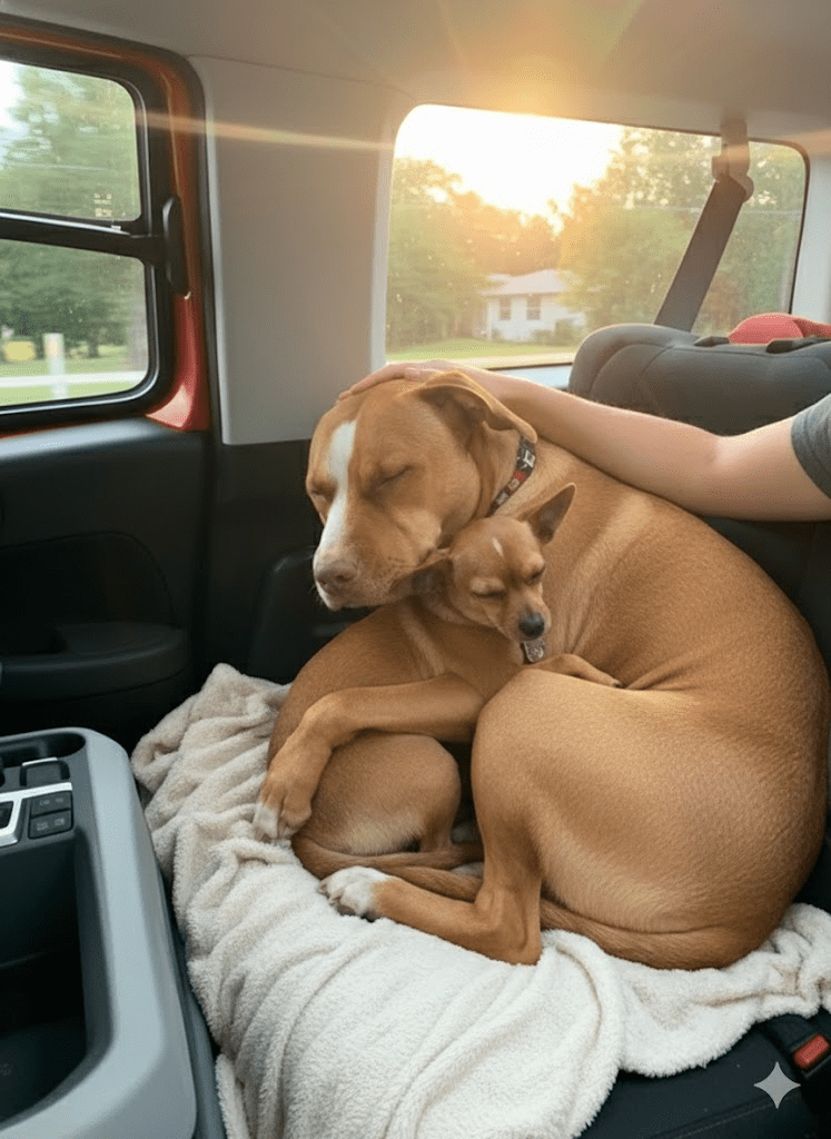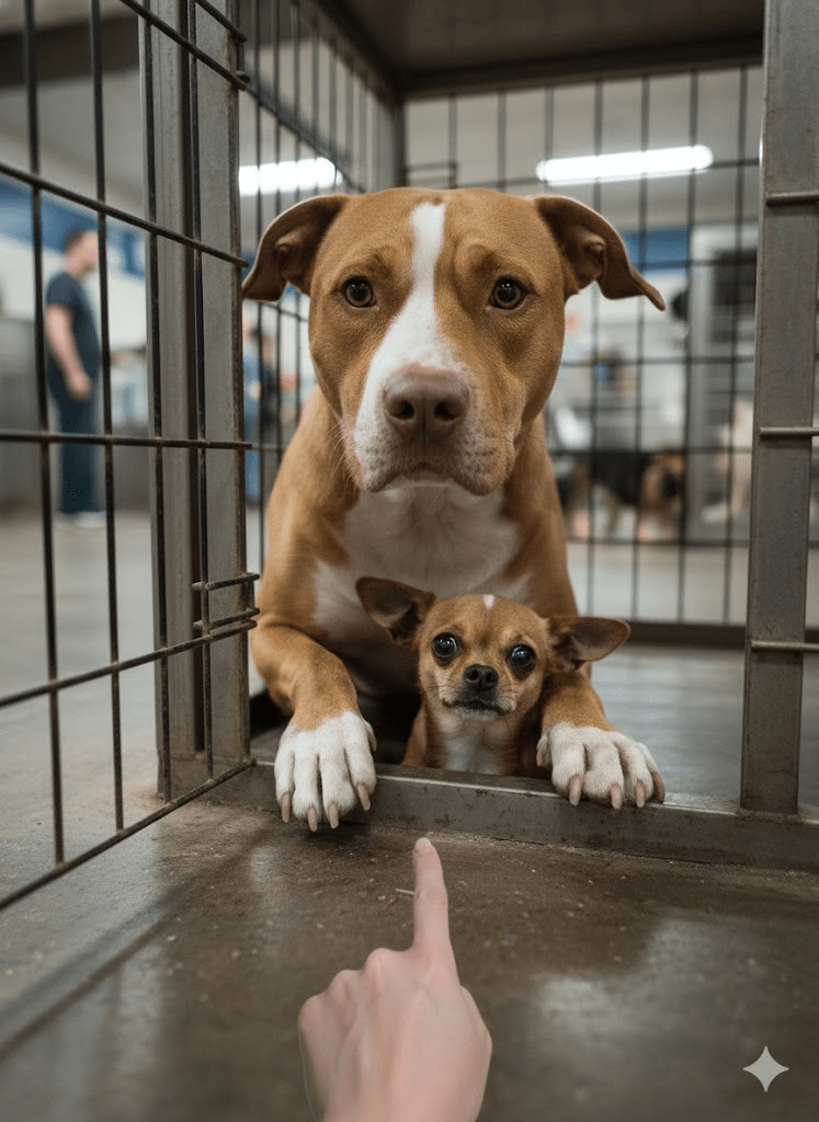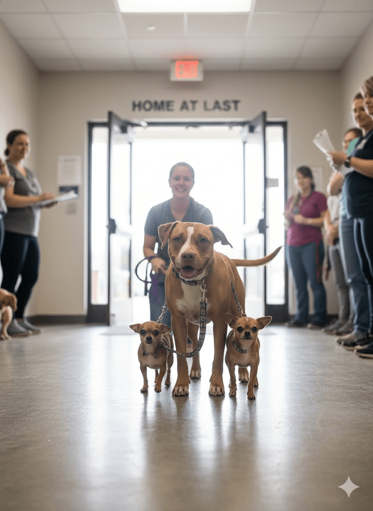 Tucked almost imperceptibly behind Stella’s sturdy frame was a tiny, trembling Chihuahua, its wide eyes fixated on its larger companion. This wasn’t shyness or fear on Stella’s part; it was profound loyalty. The little one, later named Peanut, clearly understood the impending separation, and Stella, with an almost human understanding, refused to abandon her friend. The scene was heart-wrenching, a silent plea that resonated deeply with everyone present. It became instantly clear that taking one without the other was simply not an option.