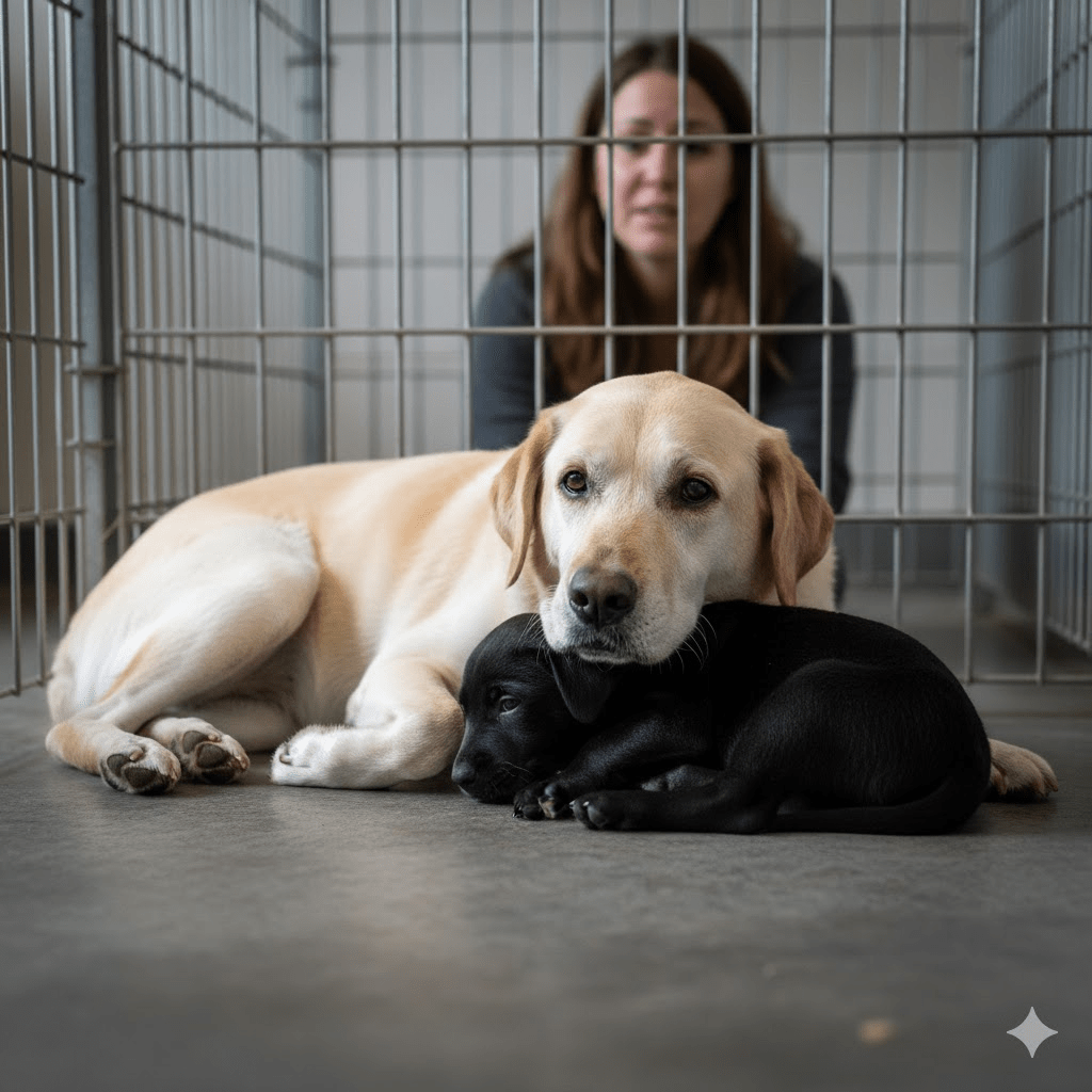 The older Labrador, whom the volunteers called “Chief,” had a gaze that was both calm and profoundly knowing, as if he’d seen too much of life but still held onto a quiet dignity. The tiny puppy, unnamed and barely past puppyhood, pressed himself against Chief’s side, a quivering shadow seeking solace. Sarah learned their heartbreaking story: the little one had been found abandoned and crying in the street, and it was Chief, himself a recent surrender, who had taken the trembling pup under his care. He’d offered warmth, protection from the shelter’s cacophony, and gentle licks to soothe the puppy’s fears. Two shattered lives had woven their own safety net, forming a small, loyal, and complete family unit within the confines of their kennel.