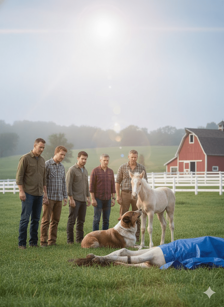 It wasn’t a human hand that offered the first, most profound comfort, but a furry nose belonging to Daisy, the farm’s resident Border Collie. Known for her intelligence and herding instincts, Daisy had always been attuned to the farm’s creatures. Yet, her reaction to Charlie was unprecedented. She approached the trembling foal with a gentleness that surprised even her owners, nuzzling him, licking his soft coat, and lying down beside him as if to offer a protective shield. This wasn’t just curiosity; it was an innate, maternal response that seemed to emanate from the deepest part of her being. The farmers watched, captivated, as Daisy took on the role of Charlie’s unsolicited guardian, a twist no one could have predicted.