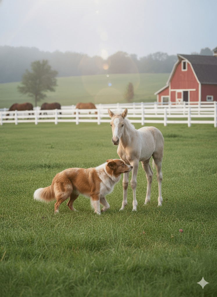 • Unlikely Guardians: The Border Collie Who Adopted an Orphaned Foal