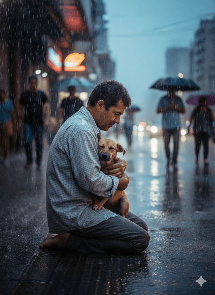 Their daily routine became a testament to selfless love. Elias would forgo meals, ensuring Max had what little food they could scavenge. During torrential downpours, Max was always wrapped in Elias’s last dry shirt, and under the relentless sun, Elias would find shade, not for himself, but for his furry companion. Most passersby saw only a homeless man; Max saw a protector, a provider, and the only family he knew.