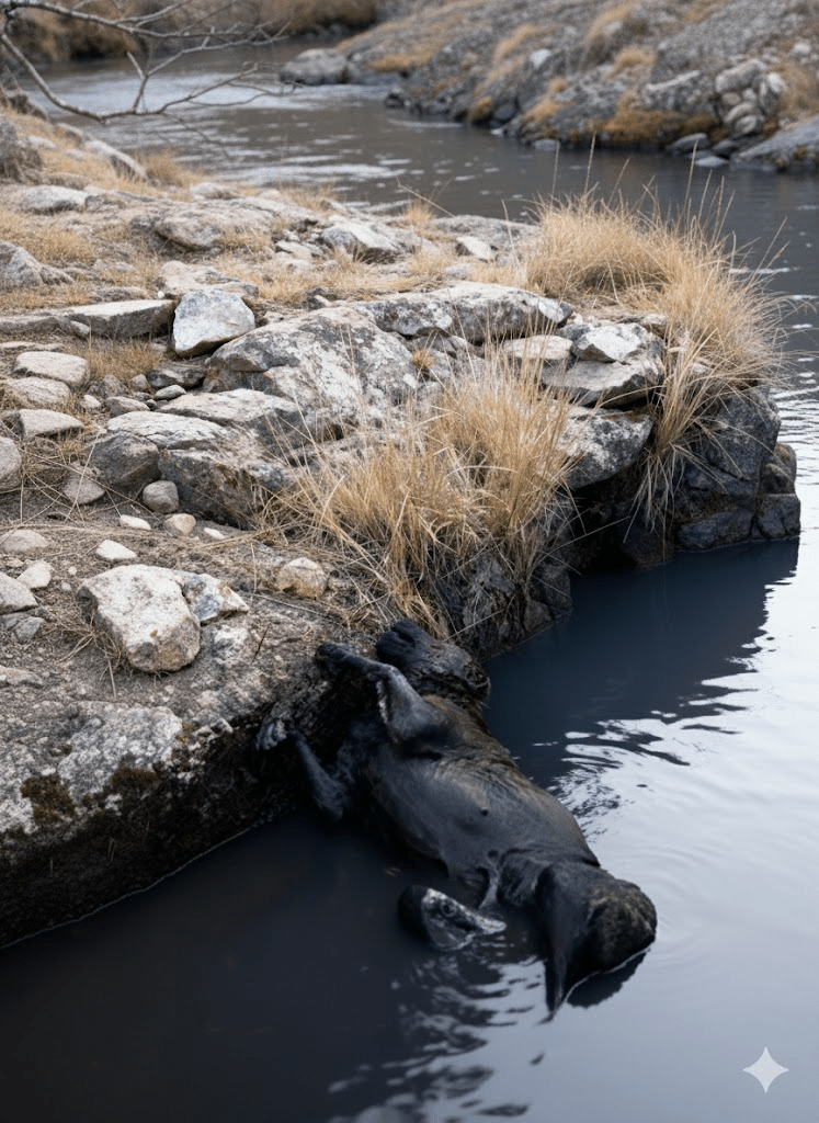 In the quiet embrace of nature, where the gentle murmur of the river meets the steadfast resolve of ancient rocks, a captivating mystery unfolds. Our journey takes us to a serene, yet intriguing, scene where a creature of the wild rests, partially submerged, in the cool, dark waters of a secluded bend. This powerful image invites us to ponder the untold stories held within its depths – a silent guardian, a moment frozen in time, beckoning us to understand its presence. What forces brought it here? What secrets does the river whisper around its form? Join us as we delve into the heart of this enigmatic discovery, exploring the raw beauty and profound questions it evokes about life, nature, and the unseen currents that shape our world.